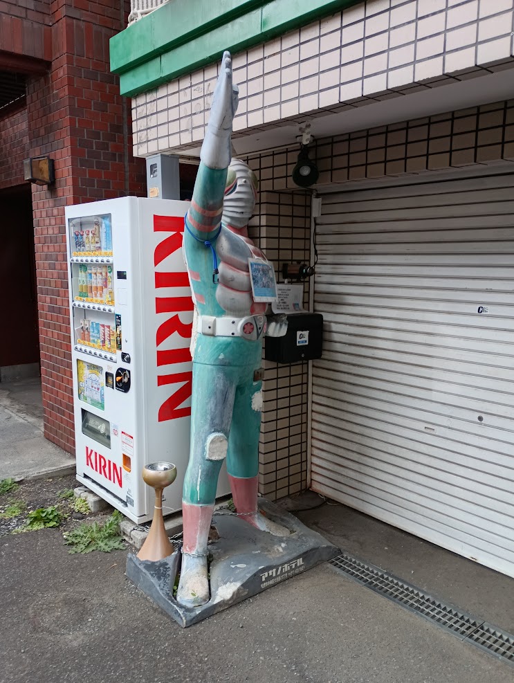 仮面ライダーV3ですね しかも 喫煙所なんですね 足元に灰皿が・・・・ 凄い これはポイ捨てなんぞしたものなら、