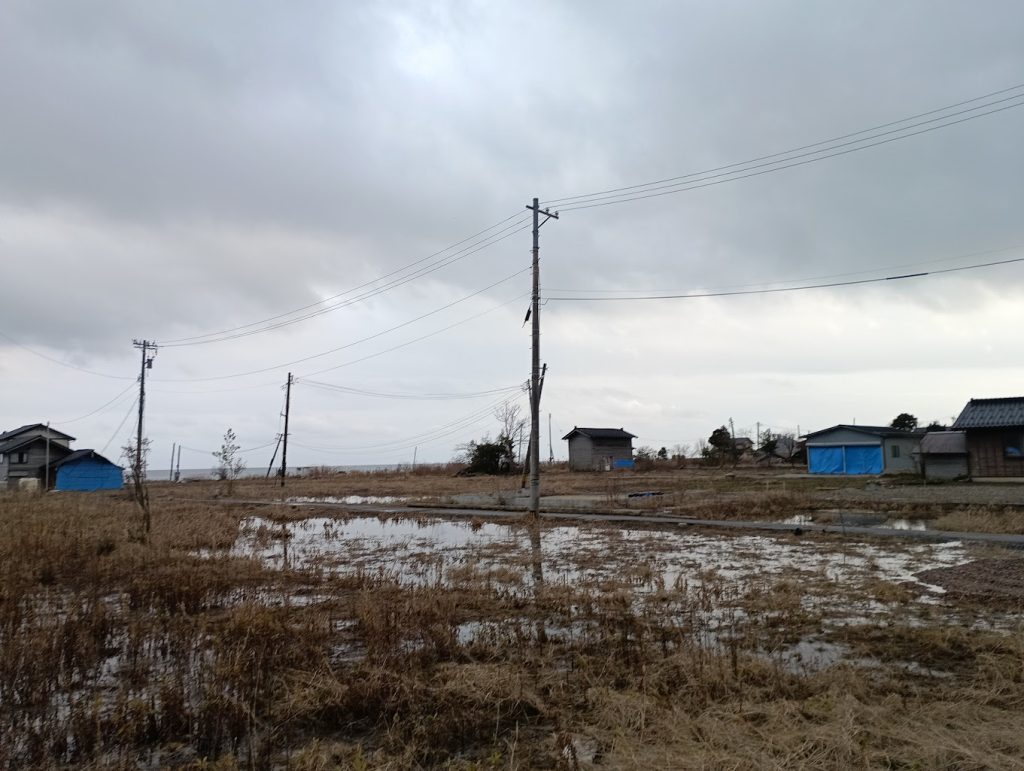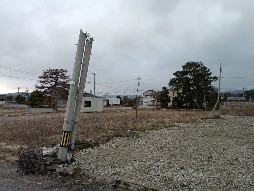 更地になっている所が前は家があった所ですね、基礎が沢山残っていました。