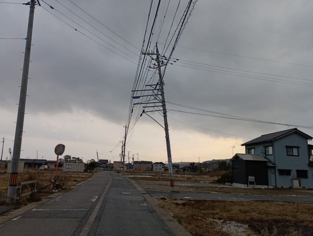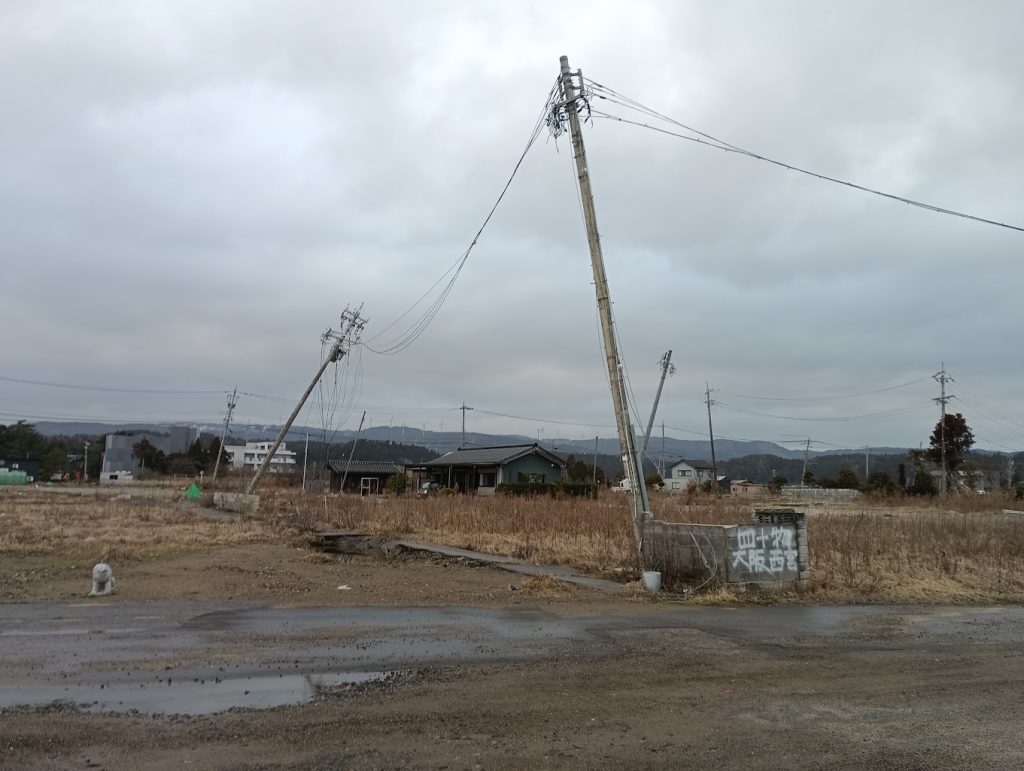 まだ 電柱が斜めです